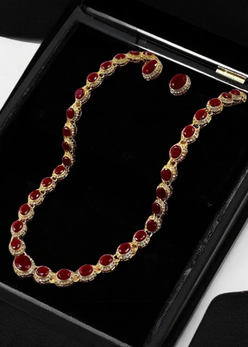 π Give your look a graceful touch with this beautifully crafted oval mala set. The smooth oval beads and matching earrings make it easy to pair with both casual and formal outfits.