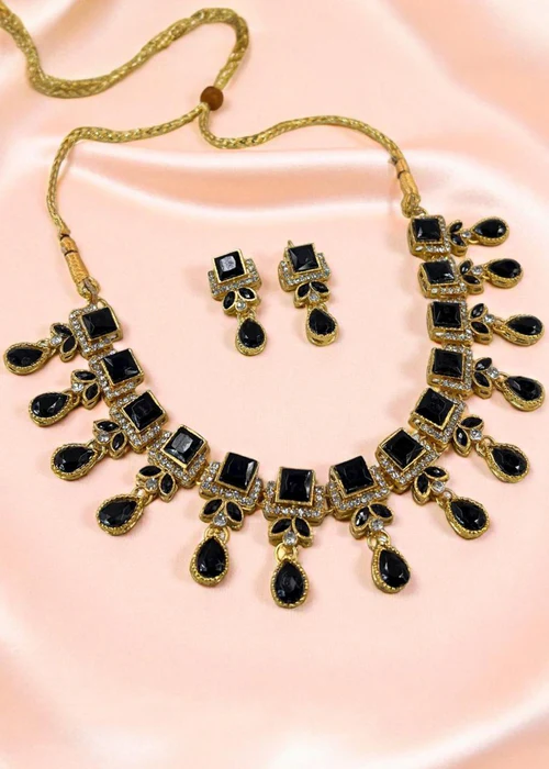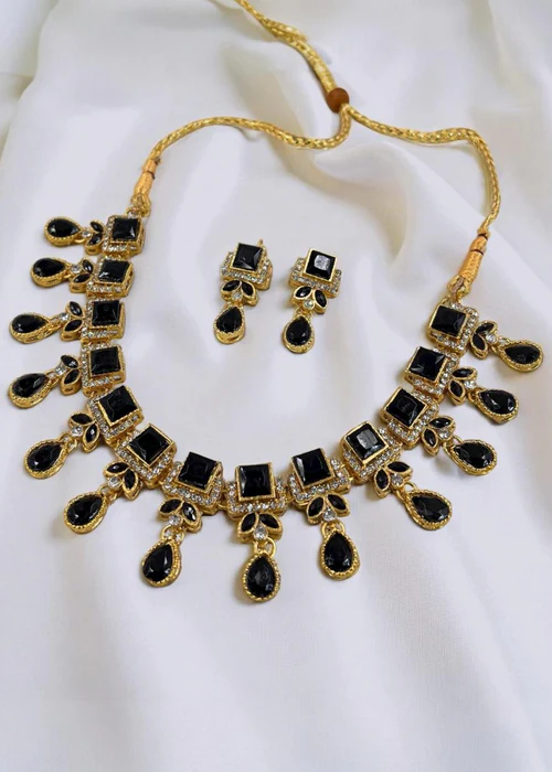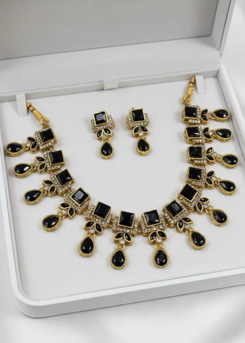 Every piece of jewellery tells a story. With this set, the story is one of refined sophistication: a square-framed necklace pendant adorned with tear-drop accents, matched with earrings to complete the look. This geometry-meets-drama design offers both structure and elegance, making it ideal for women who want to look confident and radiant.